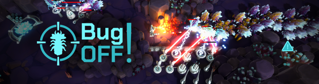 Bug Off! to gra typu tower defense połączona z survivor-like’iem. Bronimy bazy przed hordami kosmitów, którzy próbują zniszczyć źródło energii. Do dyspozycji mamy arsenał broni i umiejętności aktywnych gracza, oraz budujemy struktury obronne i wieżyczki.